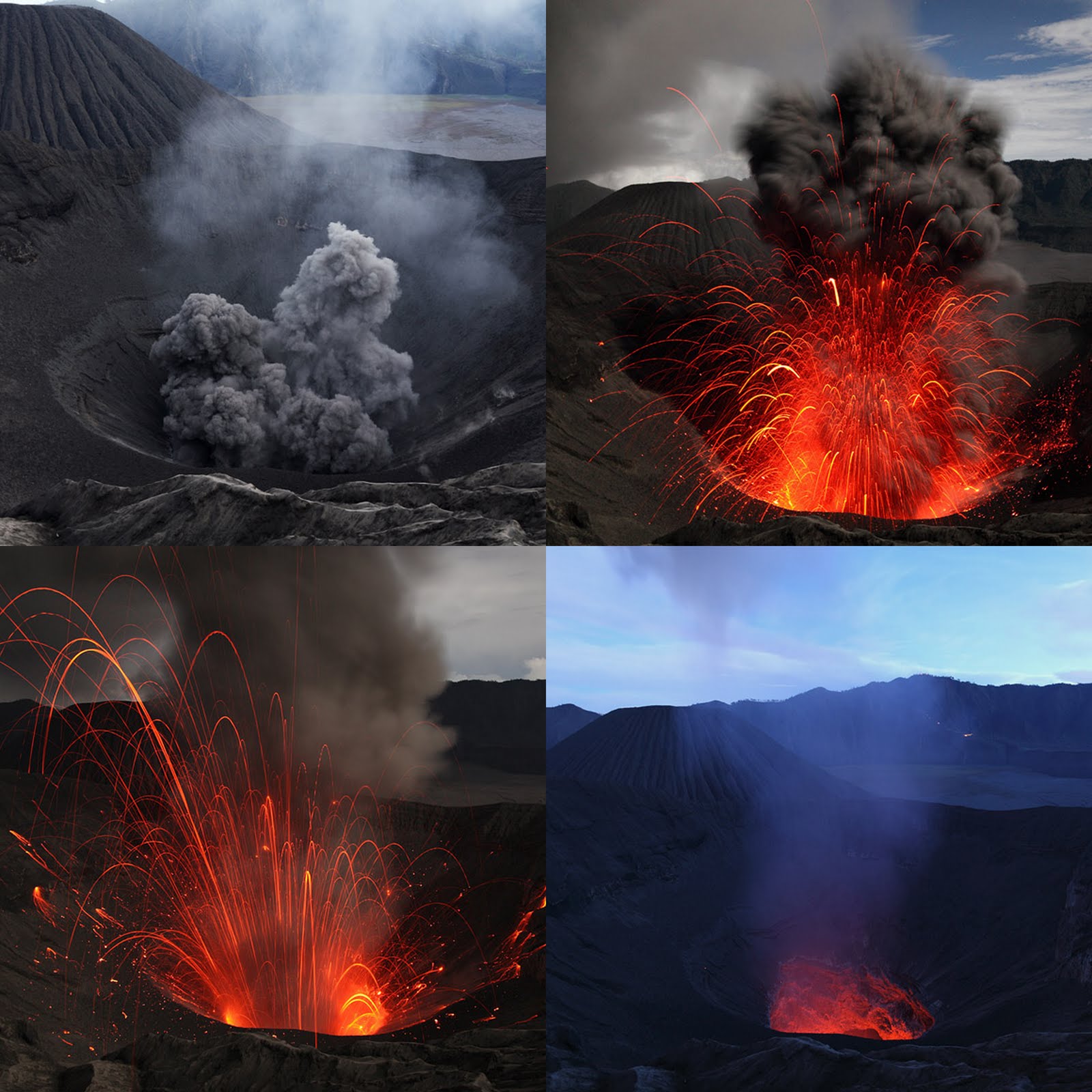 Vào một ngày buổi sáng nhìn từ vành miệng núi lửa Semeru cao hơn, phía sau